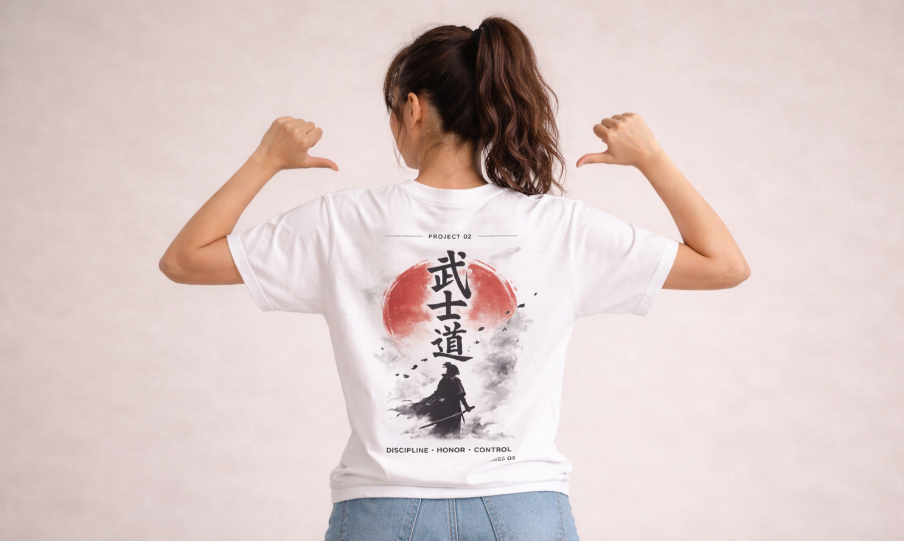 Honor and Strength Samurai T‑Shirt Red Kanji Graphic Tee